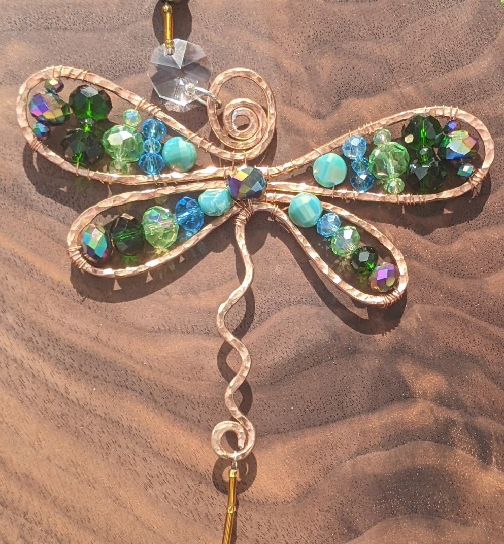 Each original piece is handcrafted from mixed components including crystal, glass, gemstones, copper and aluminum.